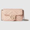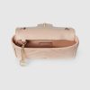The GG Marmont super mini bag is crafted from matelassé chevron leather in a delicate light pink shade for the Cruise 2025 collection. The shape is defined by the line’s emblematic Double G hardware, an archival symbol from the 1970s that has become a hallmark of the House.