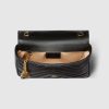The GG Marmont mini bag has a softly structured shape and a flap closure with Double G hardware. The hardware is inspired by an archival design from the ’70s. Made in matelassé chevron leather.