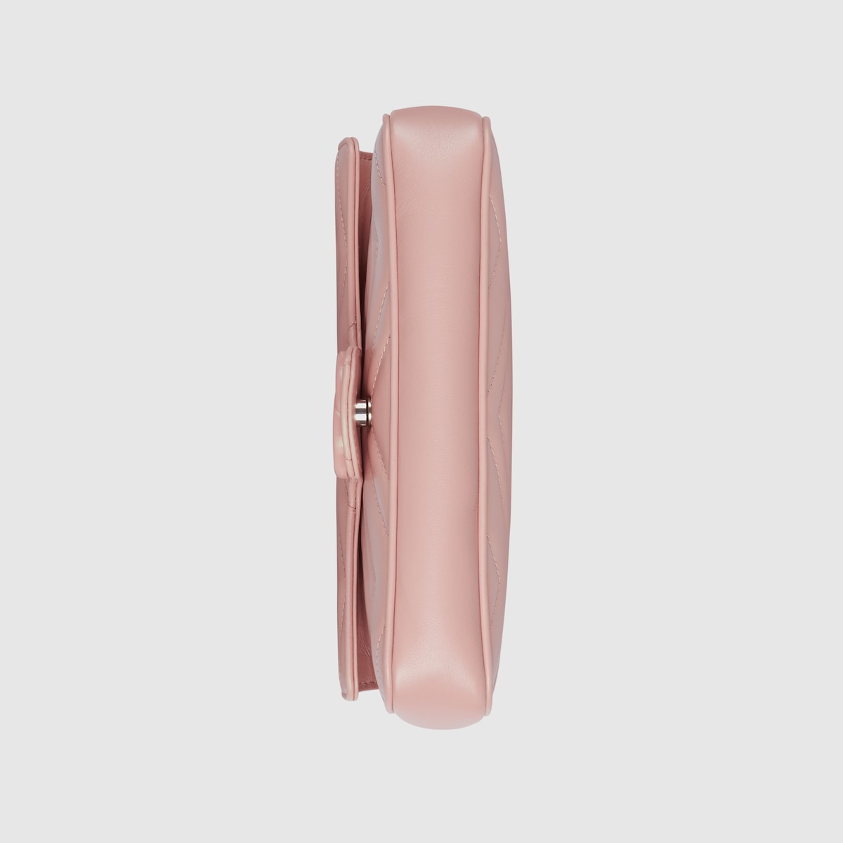 Gucci's signature small accessories are constantly evolving around a dynamic narrative. A delicate shade of pink defines this GG Marmont mini bag, completed by matching tonal hardware. The inside features a contrasting white leather card case that can be detached.