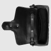 Reflecting its origins, the GG Marmont is presented with a softly structured shape in black matelassé leather. The Gucci Love Parade collection is a celebration of both archival codes and new designs. Playing with this concept, the accessory is introduced with monochrome hardware and a top handle.