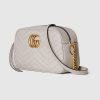 Made in matelassé chevron leather in a neutral shade of light grey, the now recognisable GG Marmont small shoulder bag has a softly structured shape and a flap closure with Double G hardware.