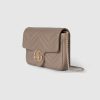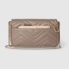 Embellished with the archival Double G logo, first introduced in the 1970s, the GG Marmont line has established itself as a signature style of the House. The two capital letters refer to the historic emblem, recognizable by the partially overlapping hardware on this bag front. Crafted from taupe matelassé leather, the elegant small accessory is evocative of Florentine craftsmanship.