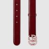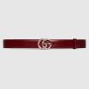 For the Cruise 2025 collection, GG Marmont belts are reinterpreted in new ways with a contemporary touch. The House’s emblematic monogram buckle is set with crystals on this Gucci Rosso Ancora red leather belt.