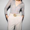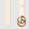 Inspired by an archival design, the Double G emblem is crafted from brass hardware with an antiqued finish on this smooth white leather belt.