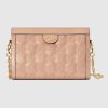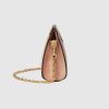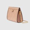 Blending pink and beige, neutrals set the tone across a selection of handbags and accessories, putting the emphasis on textures, materials, and functionality. Here, it enriches this small bag and is further enhanced with a gold-toned Double G emblem.