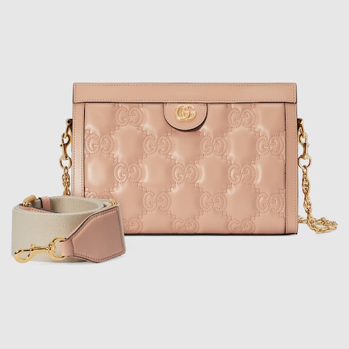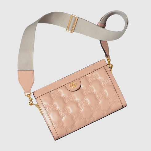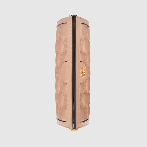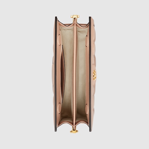 Blending pink and beige, neutrals set the tone across a selection of handbags and accessories, putting the emphasis on textures, materials, and functionality. Here, it enriches this small bag and is further enhanced with a gold-toned Double G emblem.