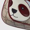 Sweet and playful animals, such as the cat, dog and panda, appear on a selection of small accessories in new GG Monogram coated fabric. The fun motifs are applied using a screen printing technique and leather patchwork. This mini bag comes to life with a panda detail on the front with multicolored leather patches.