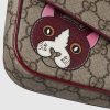 Sweet and playful animals, such as the cat, dog and panda, appear on a selection of small accessories in new GG Monogram coated fabric. The fun motifs are applied using a screen printing technique and leather patchwork. This mini shoulder bag comes to life with two cats on the front in multicolored leather patches.