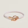 Swift calfskin braided bracelet with Glenan lock. Made in Italy. Metallic: Rose gold plated Wrist circumference: 14.5 to 15.5 cm | Braid width: 0.3 cm