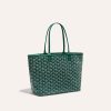 This Goyard Artois PM handbag is crafted from green Goyardine canvas and Chevroches calfskin leather with palladium-tone hardware, contrast stitching, two flat green leather handles, top zip closure and an interior floating pocket.