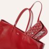 This Goyard red Anjou PM bag is made of Goyardine canvas with palladium hardware, contrast stitching, red Chevroches calfskin lining and a removable red coin purse.