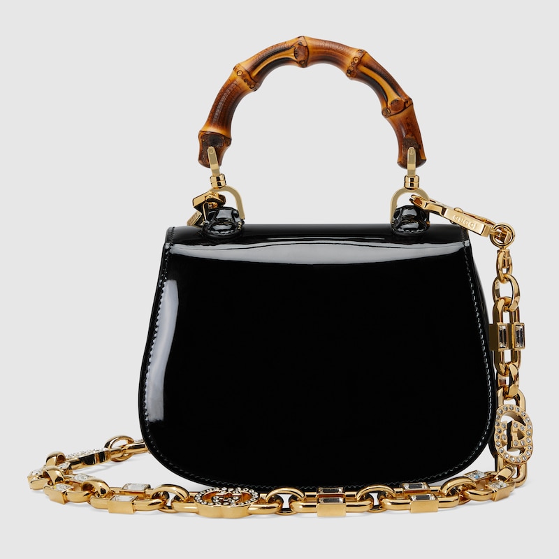 • Detachable chain shoulder strap with Interlocking G with crystals; strap drop 15.9″