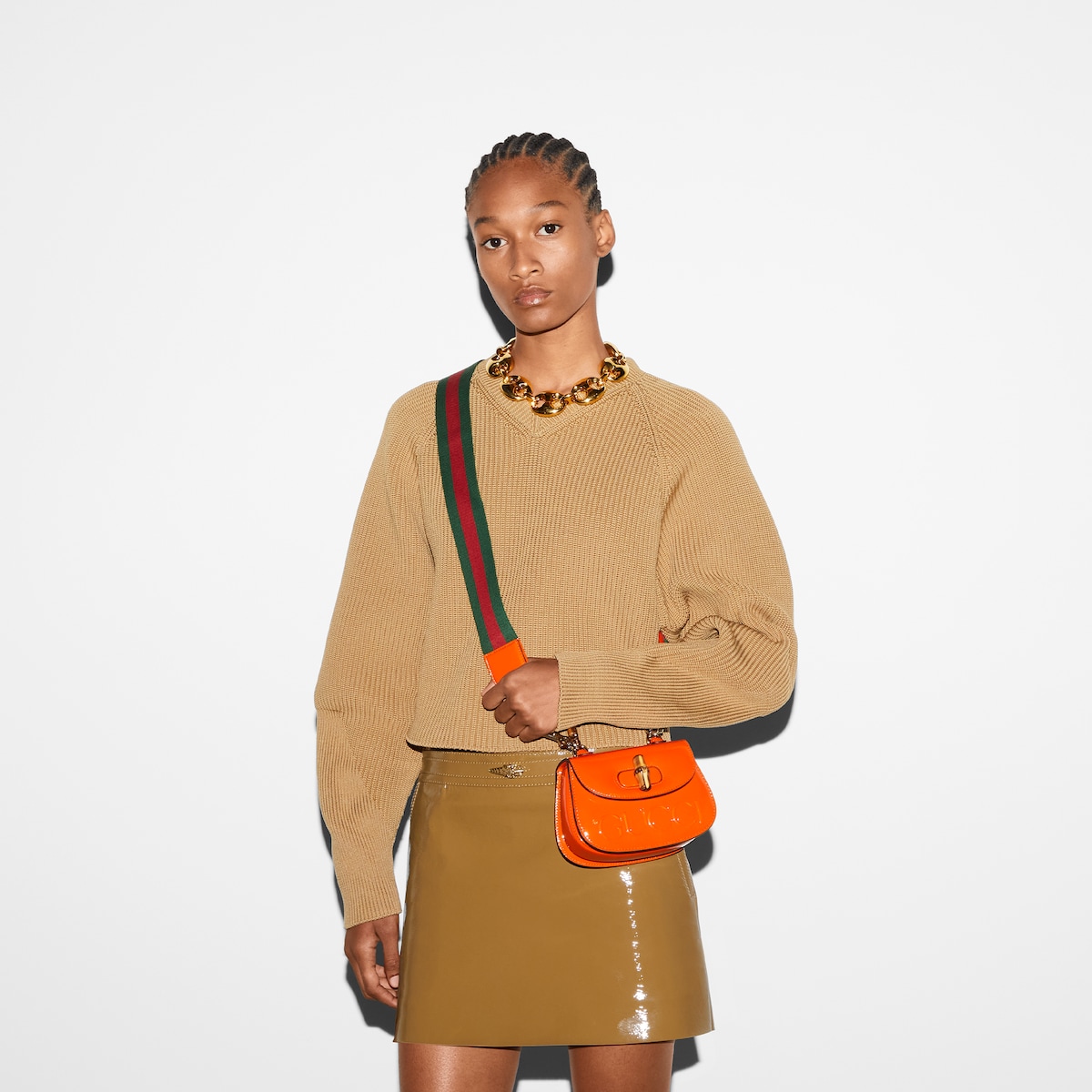 With its unique features such as the hand-curved bamboo handle, closure and a mirror in its own leather holder, Gucci Bamboo 1947 embodies the House’s signature style and artisanal excellence. Exclusively available via Client Advisors and in selected stores.