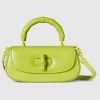 In the Spring Summer 2025 collection, this small top handle bag in soft leather reinterprets the signature bamboo motif with monochromatic hardware. Gucci Bamboo Diva is the starring feature for any look.