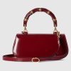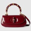 In the Spring Summer 2025 collection, this small top handle bag reinterprets the signature bamboo hardware with resin and brass details. Gucci Bamboo Diva is the starring feature for any look.