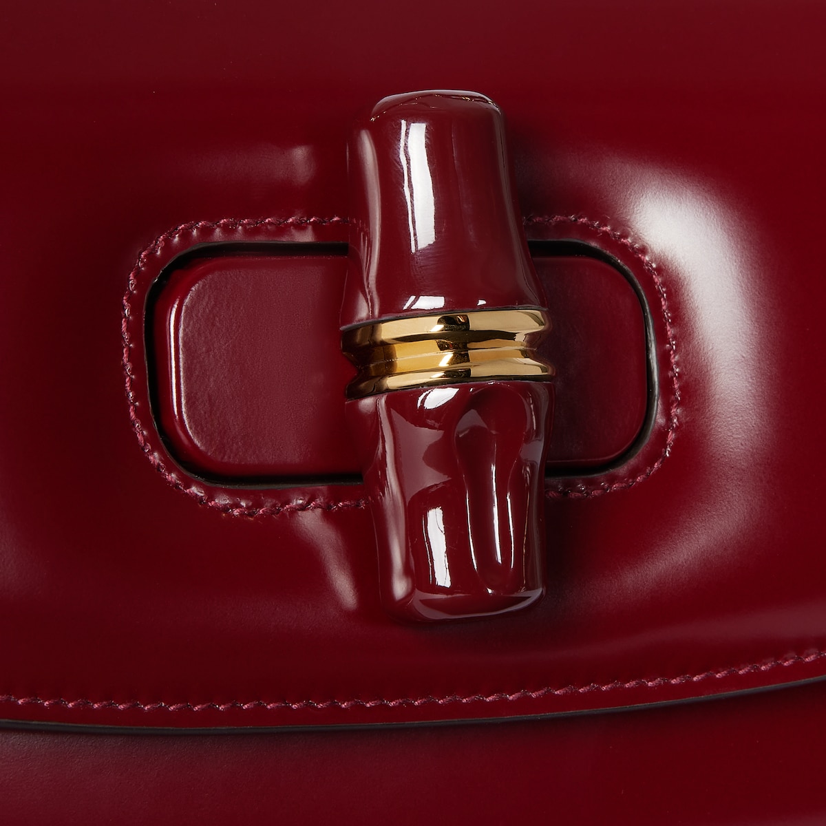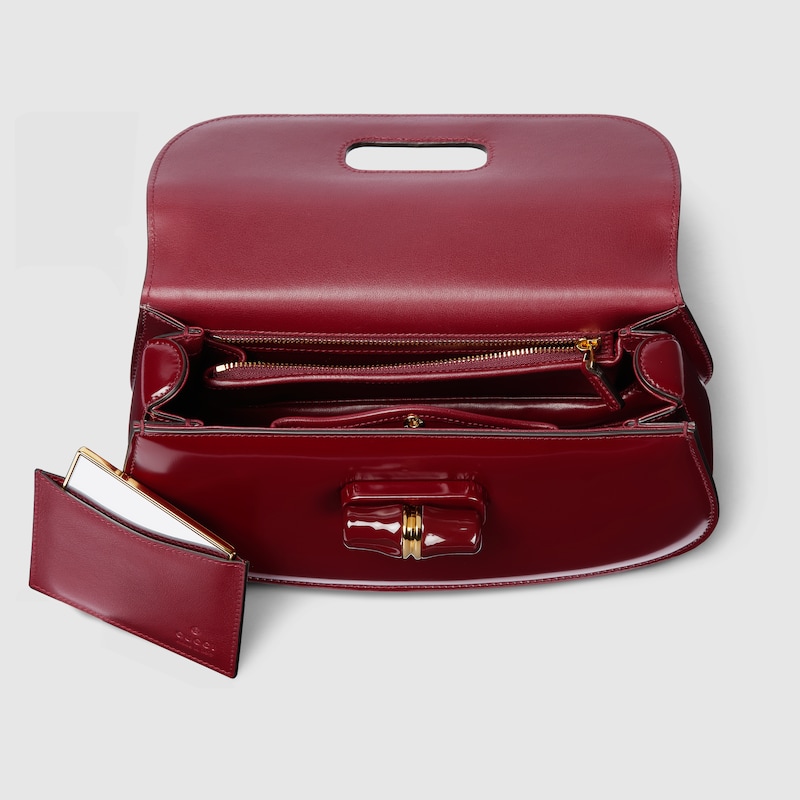 In the Spring Summer 2025 collection, this small top handle bag reinterprets the signature bamboo hardware with resin and brass details. Gucci Bamboo Diva is the starring feature for any look.