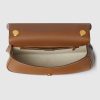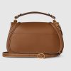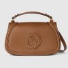 The new Gucci Blondie bag, whose distinctive logo first appeared in the House’s collections in the early 1970s, weaves together past and present in a fusion of nostalgia and modernity. This medium top handle bag with a detachable and adjustable leather shoulder strap is crafted from brown smooth leather.