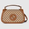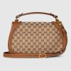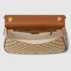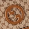 The new Gucci Blondie bag, whose distinctive logo first appeared in the House’s collections in the early 1970s, weaves together past and present in a fusion of nostalgia and modernity. This medium top handle bag with a detachable and adjustable leather shoulder strap is crafted from beige and dark brown GG canvas.