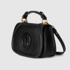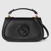 The new Gucci Blondie bag, whose distinctive logo first appeared in the House’s collections in the early 1970s, weaves together past and present in a fusion of nostalgia and modernity. This small top handle bag with a detachable and adjustable leather shoulder strap is crafted from black smooth leather.