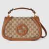 The new Gucci Blondie bag, whose distinctive logo first appeared in the House’s collections in the early 1970s, weaves together past and present in a fusion of nostalgia and modernity. Presented in beige and ebony GG canvas with a smooth brown leather trim, this small bag is complete with a top handle and adjustable shoulder strap.