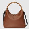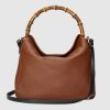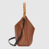 Combining recognizable elements of the House, the large-sized shoulder bag is defined by its bamboo handles and Double G hardware. Crafted from brown leather, the accessory is further accentuated a contrasting leather shoulder strap.