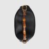 Combining recognizable elements of the House, the small shoulder bag is defined by its bamboo handles and Double G hardware. Crafted from black leather, the accessory is further accentuated a contrasting leather shoulder strap in grey.