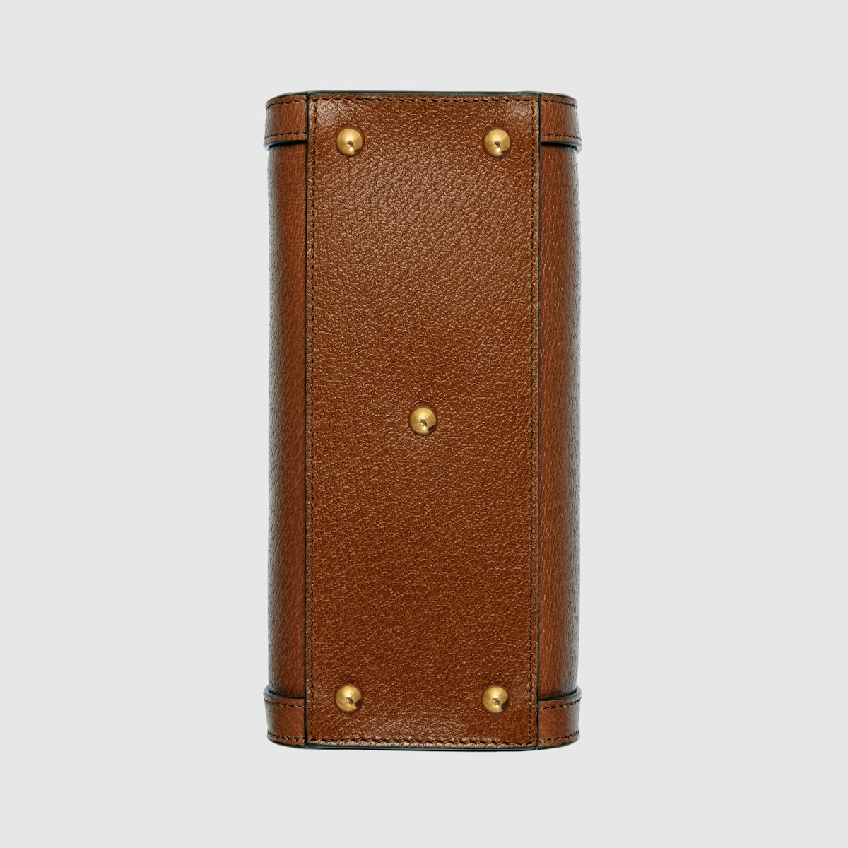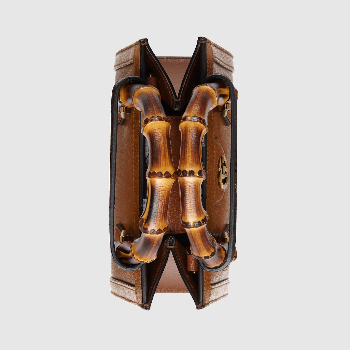 An evolution of a bamboo handle tote first introduced in 1991, the Gucci Diana represents the notion of style in constant evolution and is reimagined with removable, neon leather belts—a nod to the functional bands used to keep the handles in shape. Here, a mini version of the emblematic style is presented in cuir leather.