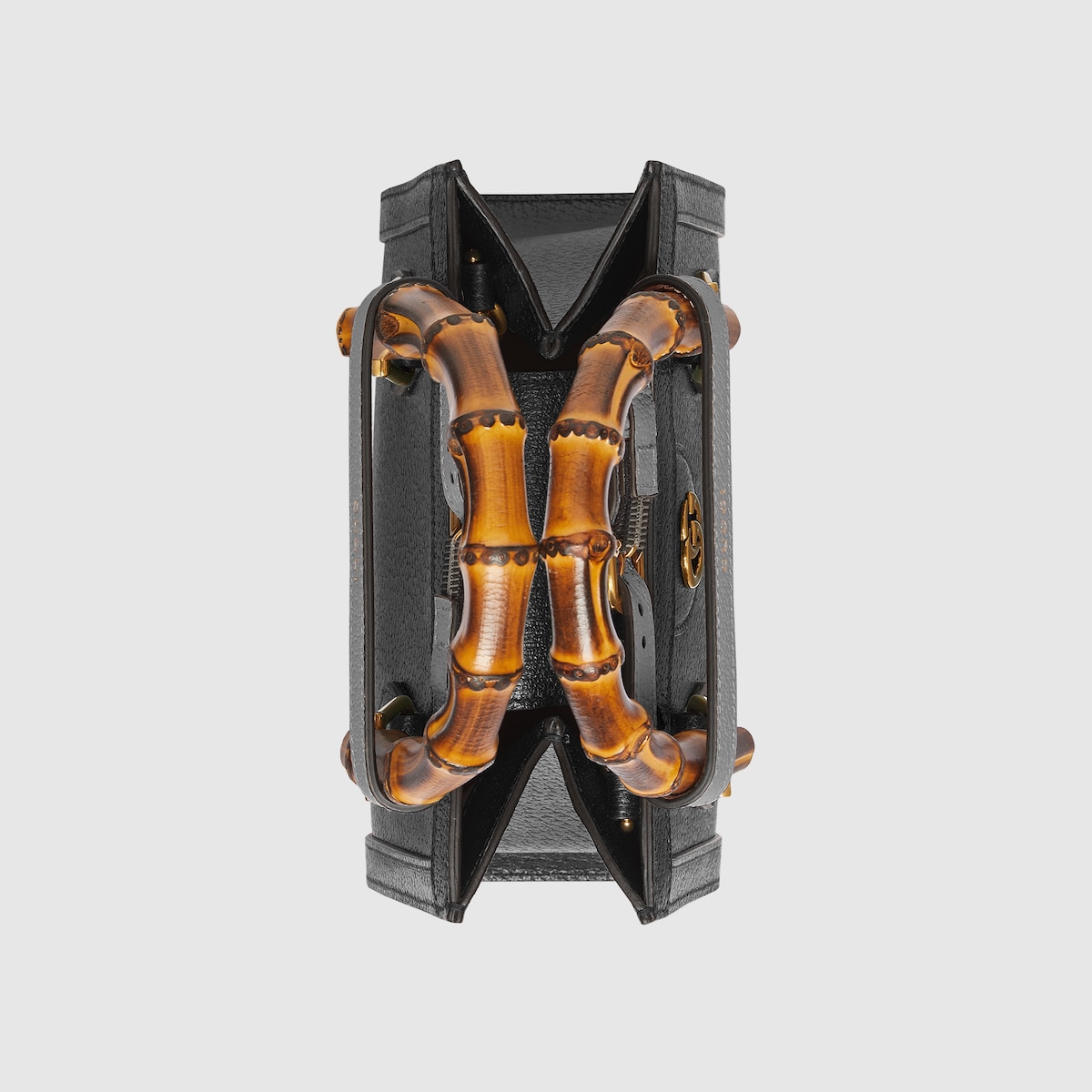 An evolution of a bamboo handle tote first introduced in 1991, the Gucci Diana represents the notion of style in constant evolution and is reimagined with removable, neon leather belts—a nod to the functional bands used to keep the handles in shape. Here, a mini version of the emblematic style is presented in black leather.