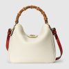 Combining recognizable elements of the House, the Gucci Diana is defined by its bamboo handles and Double G hardware. Crafted from white leather, the accessory is further accentuated by a contrasting red leather shoulder strap.