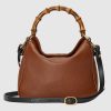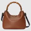 Combining recognizable elements of the House, the Gucci Diana is defined by its bamboo handles and Double G hardware. Crafted from brown leather, the accessory is further accentuated by a contrasting black leather shoulder strap.