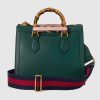 The concept of reinvention continues to shape the House’s designs. An evolution of a bamboo handle tote first introduced in 1991, the Gucci Diana represents the notion of style in constant evolution. The design plays with traditional details and renews them new meaning. Playing with this idea, the functional bands used to keep bamboo handles in shape are reimagined as playful leather belts. Here, the tote is introduced in green leather.
