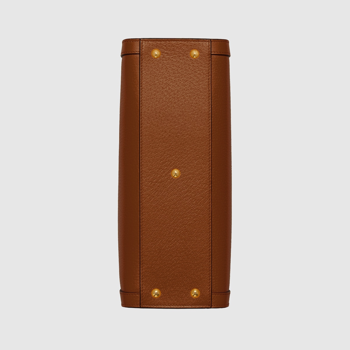 The concept of reinvention continues to shape the House’s designs. An evolution of a bamboo handle tote first introduced in 1991, the Gucci Diana represents the notion of style in constant evolution. The design plays with traditional details and renews them new meaning. Playing with this idea, the functional bands used to keep bamboo handles in shape are reimagined as playful leather belts. Here, the tote is introduced in cuir leather.