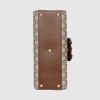 The Gucci Horsebit 1955 is introduced in beige and ebony GG Supreme canvas and a medium size. The collection unifies details first introduced on the original bag that inspired the line from over six decades ago with a modern spirit, highlighting the Horsebit. Part of Gucci’s genetic code, the double ring and bar design has been established as one of the most distinctive elements among the House symbols borrowed from the equestrian world. A brown leather trim completes the style with an elevated feel.