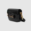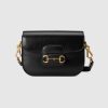 Petite versions of the Gucci Horsebit 1955 add a hybrid twist to the vintage inspired line. Enriched with two different shoulder straps, the black leather mini bag’s character transforms from understated elegance with a tonal leather strap to a strong logo feel thanks to a red and green Web option.
