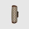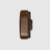 Petite versions of the Gucci Horsebit 1955 add a hybrid twist to the vintage inspired line. Enriched with two different shoulder straps, the mini bag’s character transforms from understated elegance with a tonal leather strap to a strong logo feel thanks to a red and green Web option. The accessory is presented in monogram canvas with a brown leather trim.