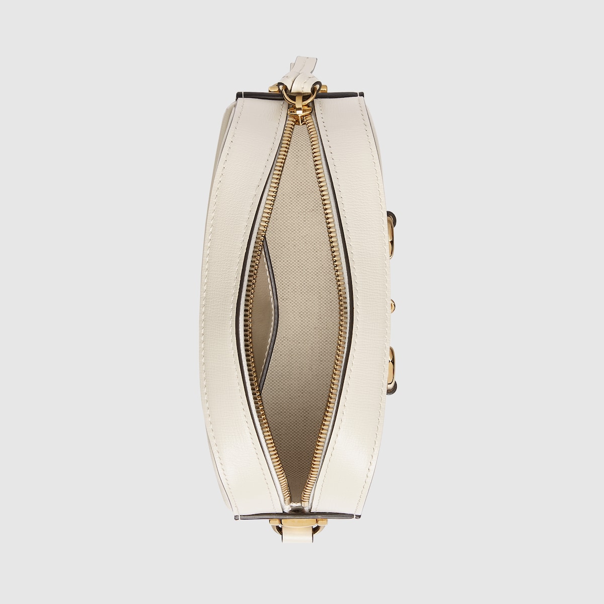 The Gucci 1955 Horsebit evolves as part of the latest collection with the addition of a small shoulder bag variation, offering greater versatility and functionality. Presented in signature white leather with a zip closure, an adjustable shoulder completes the design.
