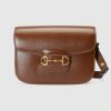 Introduced for Cruise 2020, the Gucci Horsebit 1955 bag is recreated from an archival design. With the same lines and forms first introduced over six decades ago, the accessory unifies the original details with a modern spirit, highlighting the Horsebit. Part of Gucci’s genetic code, the double ring and bar design has been established as one of the most distinctive elements among the House symbols borrowed from the equestrian world. Presented on a small flap shoulder bag, the hardware is paired with textured brown leather and completed with a special mechanism that adjusts the length of the shoulder strap so it can be carried on one shoulder or cross body.