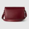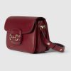 The Gucci Horsebit 1955 Soft continues to highlight its signature double ring and bar hardware. This small shoulder bag style is crafted from Gucci Rosso Ancora red soft leather with natural shine.