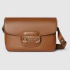 The Gucci Horsebit 1955 continues its equestrian-inspired design with the double ring and bar hardware, blending light gold-toned details and soft leather on this shoulder bag.