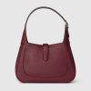 In the Fall Winter 2024 collection, the Gucci Jackie 1961 shoulder bag with new light gold-toned piston closure features fine Gucci Rosso Ancora red leather, highlighting the craftsmanship, crescent shape, and sleek silhouette of the House’s iconic handbag. This small size comes with a leather strap and additional green and red Web strap for different styling options.
