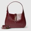 The Gucci Jackie 1961 is crafted from fine leather which highlights its craftsmanship, crescent shape, and sleek silhouette. Light gold-toned hardware, leather trim, and an additional strap featuring the green and red Web gives this Jackie 1961 small shoulder bag in Gucci Rosso Ancora leather, the signature red hue of the House, further styling options.