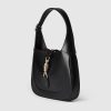 The new Gucci Jackie 1961 is crafted from premium fine leather which highlights the craftsmanship, crescent shape, and sleek silhouette of the House's iconic shoulder bag. Light gold-toned hardware, leather trim, and an additional Web strap gives this Jackie 1961 small shoulder bag in black leather further styling options.