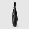 The new Gucci Jackie 1961 is crafted from premium fine leather which highlights the craftsmanship, crescent shape, and sleek silhouette of the House’s iconic shoulder bag. Light gold-toned hardware, leather trim, and an additional Web strap gives this Jackie 1961 small shoulder bag in black leather further styling options.