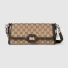 Gucci Luce, which translates to light in Italian, radiates playful charm and boundless joy. The Original GG canvas lends itself to this small shoulder bag design. The beige and ebony motif is accentuated by dark brown leather trim and light gold-toned hardware. The green and red stripe Web is adjustable and detachable through a leather loop and hardware ring on the sides, giving the bag additional function and structure.