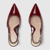 The Gucci Signoria pump, named after the central piazza of Florence, recalls the classic elegance of the House’s founding city. With its shiny patent leather, pointed toe and eye-catching Gucci chain, this slingback style elevates the everyday wardrobe for the coming season.
