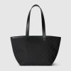 The Gucci Totissima blends the word 'tote’ with the Italian superlative ‘issima’, or ‘the most’, emphasizing the bag's functionality and enduring style. The internal Web trim undergoes meticulous crafting to ensure that it is uniformly attached, and the seams are entirely hidden on this small tote bag in black.