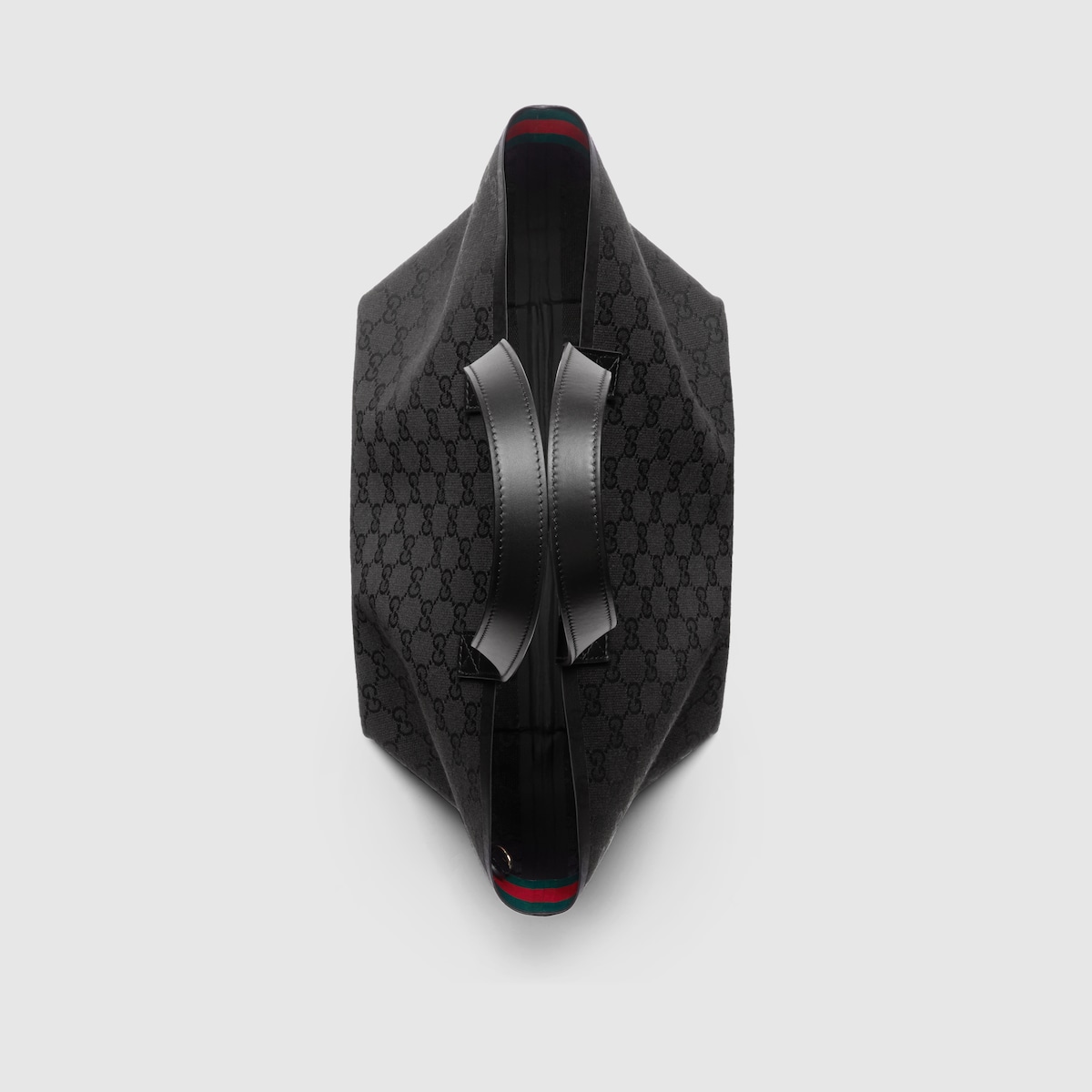 The Gucci Totissima blends the word 'tote’ with the Italian superlative ‘issima’, or ‘the most’, emphasizing the bag's functionality and enduring style. The internal Web trim undergoes meticulous crafting to ensure that it is uniformly attached, and the seams are entirely hidden on this small tote bag in black.