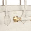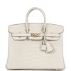 This Birkin is in Beton Matte Mississippienis alligator leather with gold hardware and has tonal stitching, front strap, two straps with center toggle closure, clochette with lock and two keys and double rolled handles.