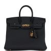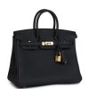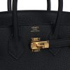 This Birkin is in Black togo leather with gold hardware and has tonal stitching, front flap, two straps with center toggle closure, clochette with lock and two keys, and double rolled handles.
