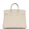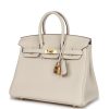 This Birkin is in Craie togo leather with gold hardware and has tonal stitching, two straps with front toggle closure, clochette with lock and two keys and double rolled handles.